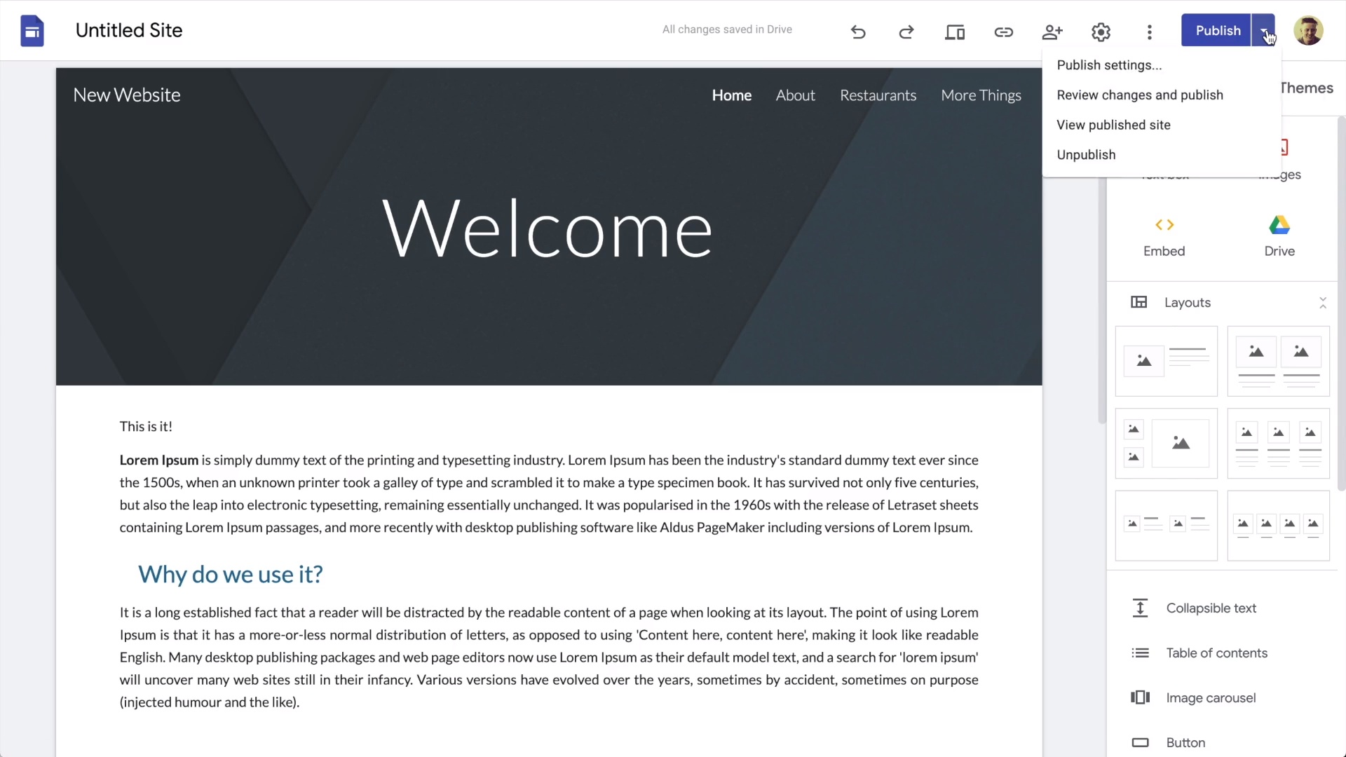 If you don’t care much about your website and think your current Google Business Profile-made website is good enough, you can replicate it with Google’s own site builder, Google Sites.