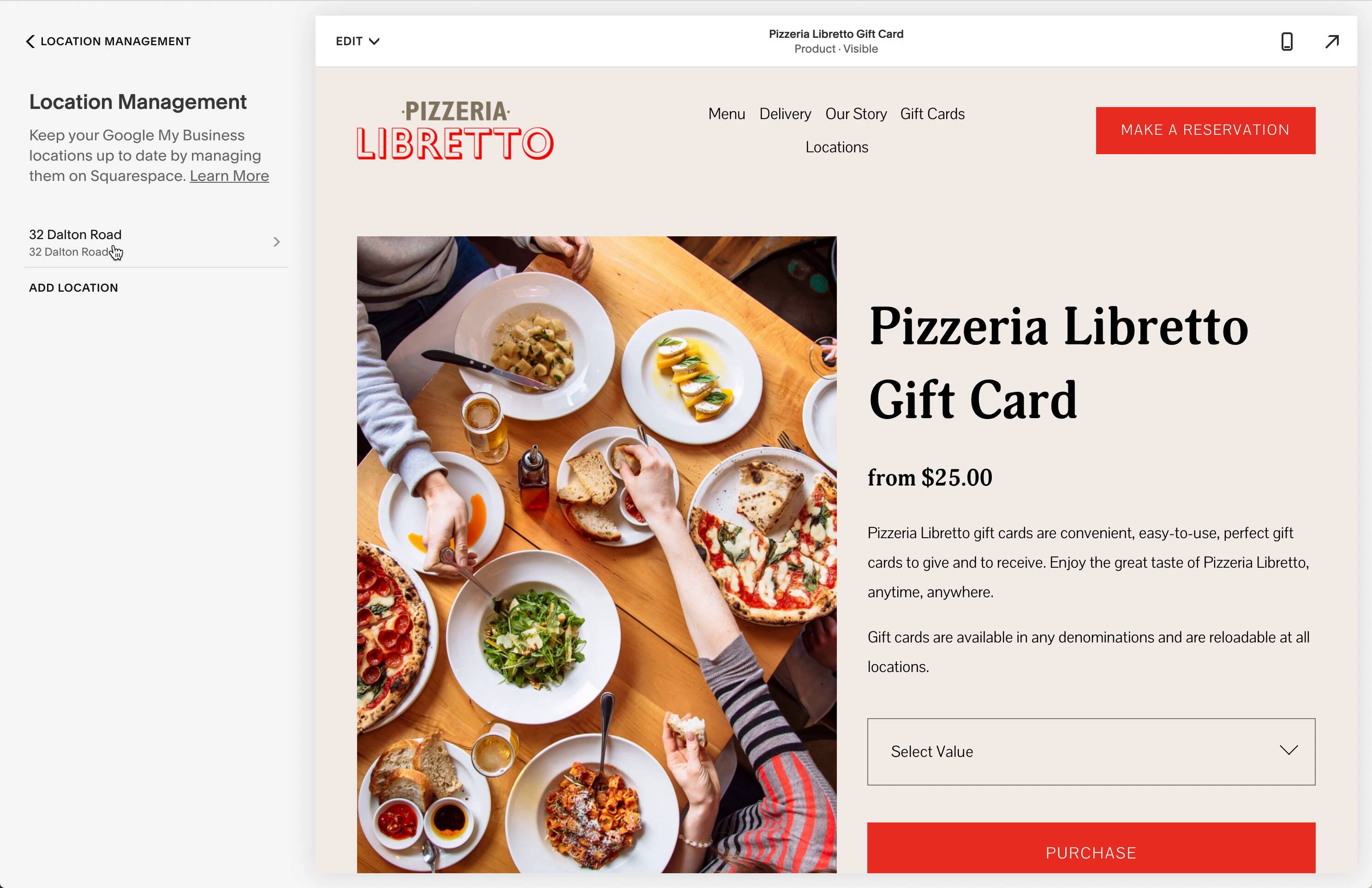 Setting up locations in Squarespace.