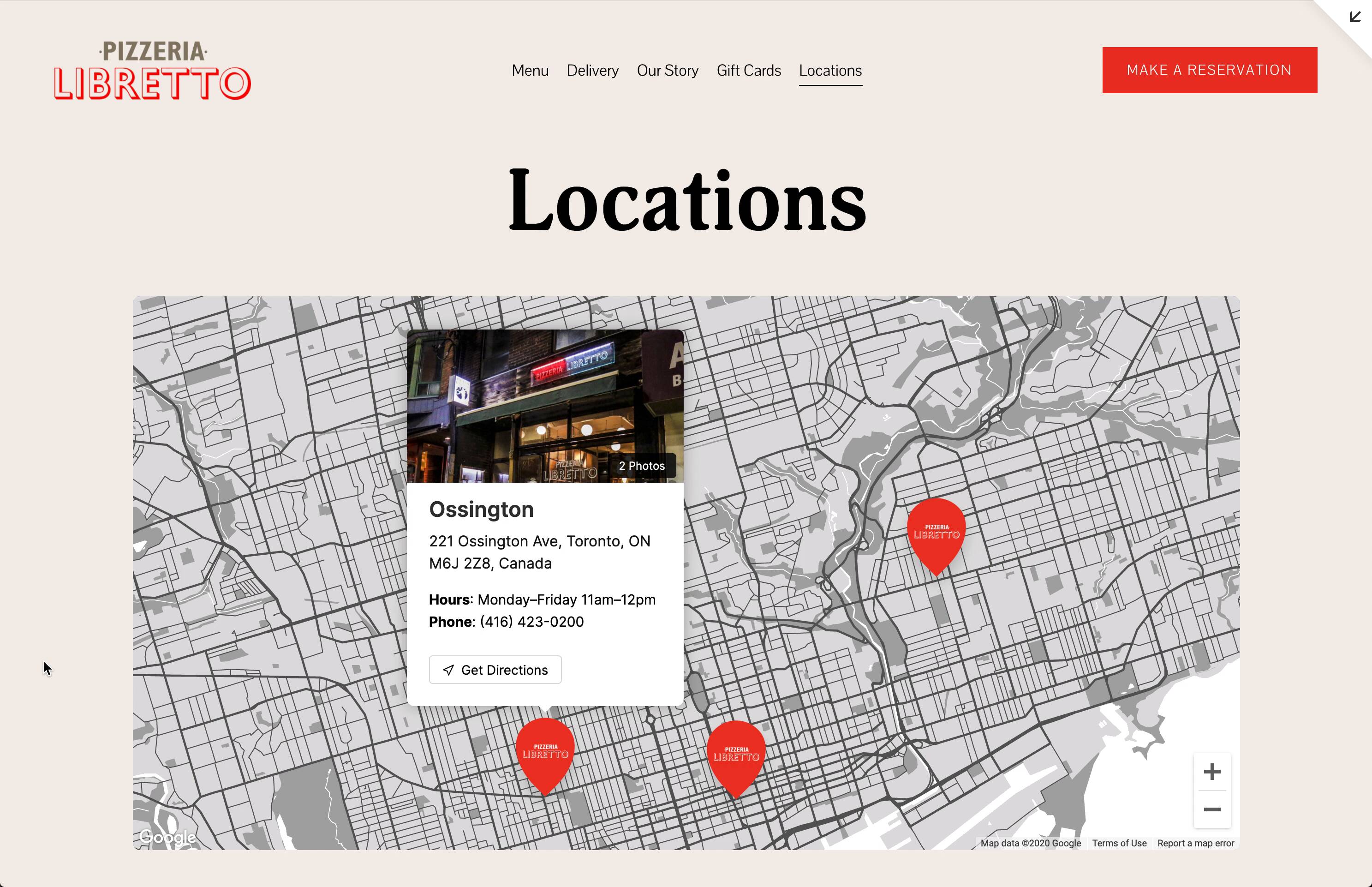 The Locations page I created for Pizzeria Libretto.