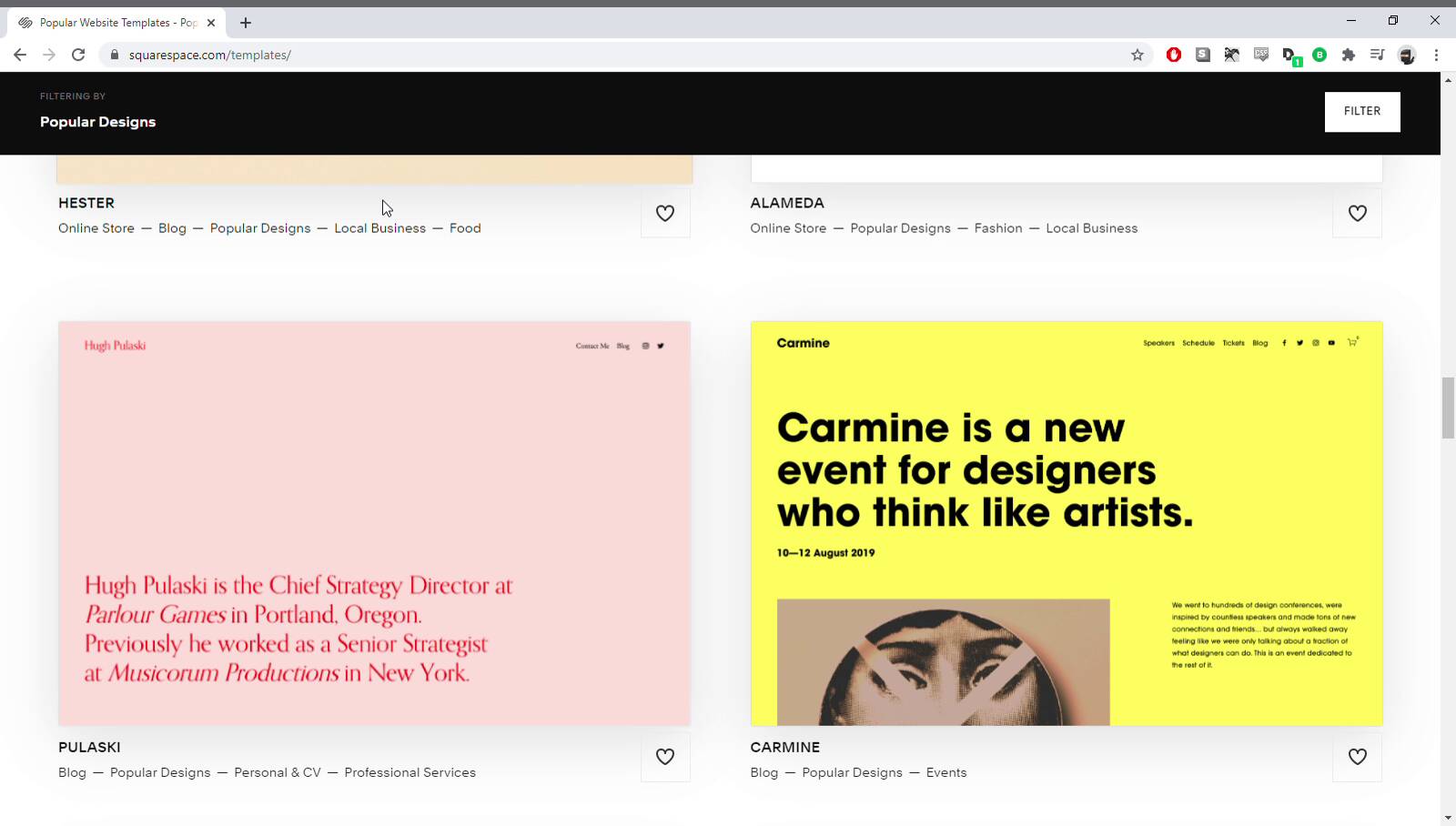 In comparison, Squarespace templates are a lot more varied. Templates are designed with particular usage cases in mind, so it’s easier to find one that closely fits your needs.