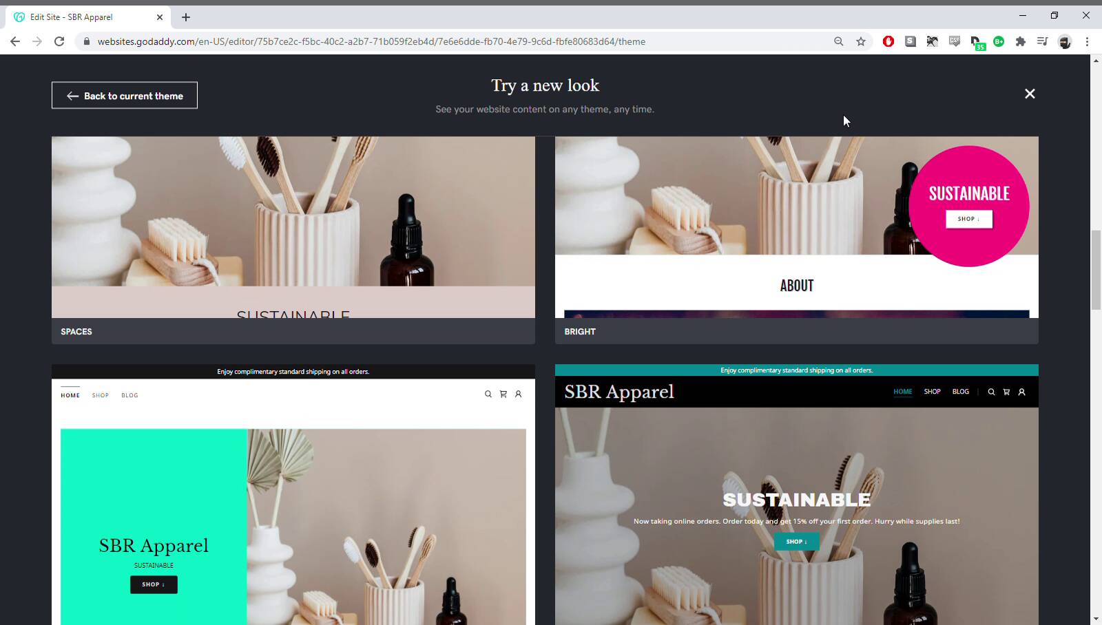 One downside to Squarespace templates is that you can’t change your template once you’ve chosen it, without starting your whole site again from scratch. GoDaddy makes it easy to pick a different theme for your website, keeping all of your content intact.