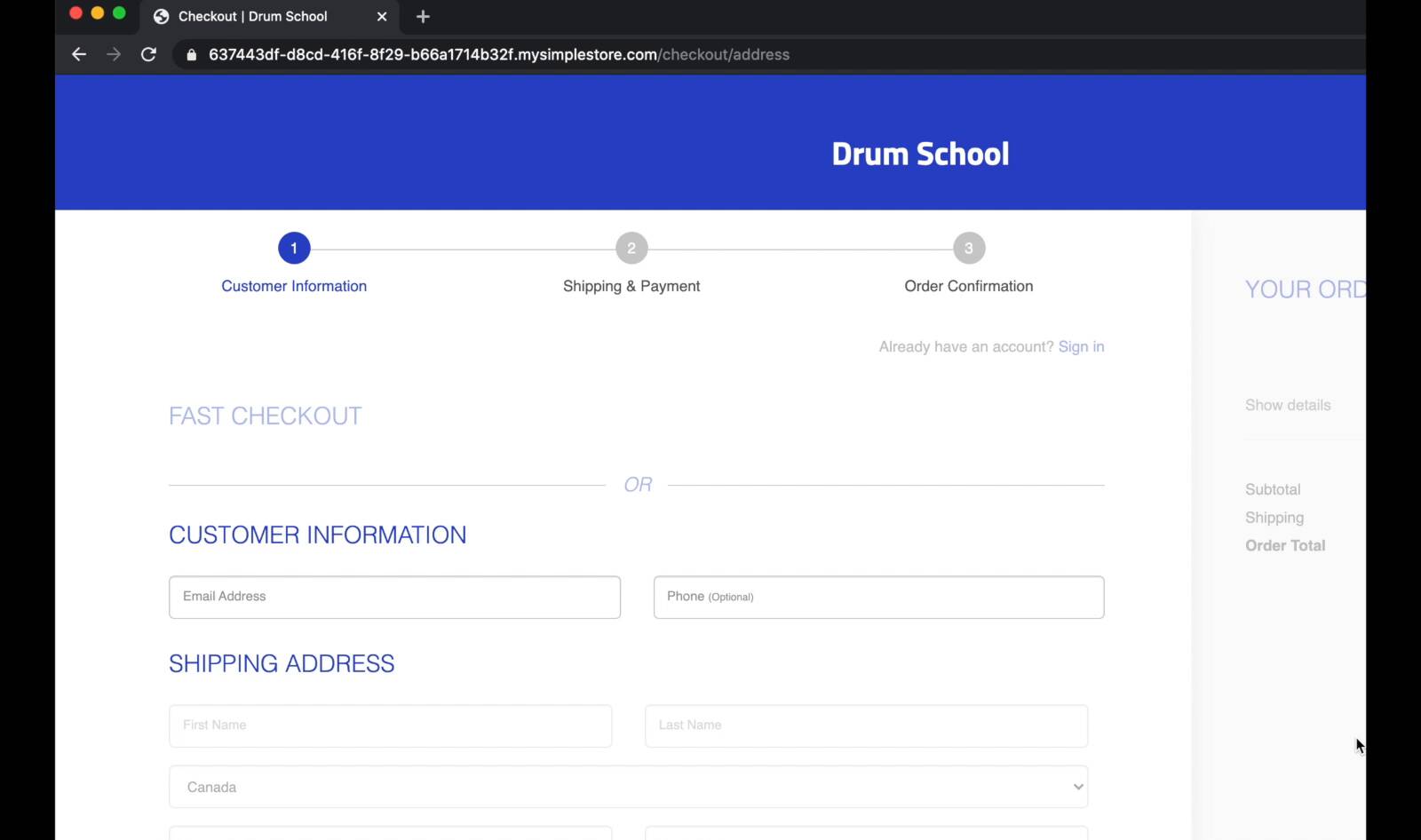 The checkout for your store isn’t hosted on your domain, so when customers go to purchase they’ll be redirected to mysimplestore.com.