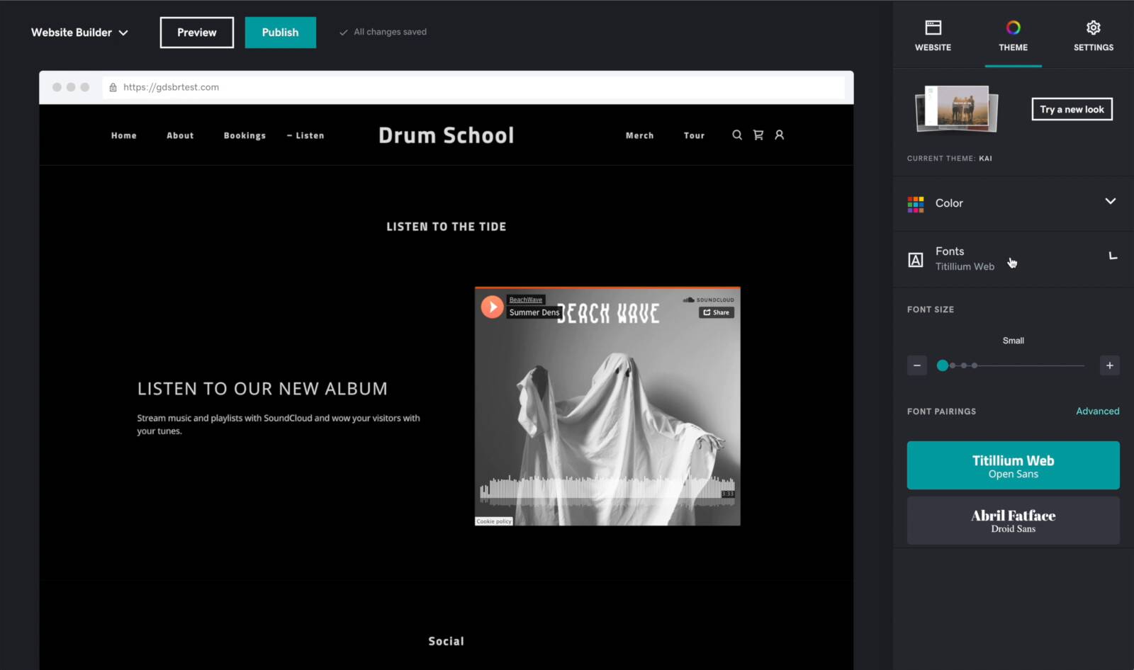 But all of these are fully customizable anywhere on the site. You can change font, color and text size (and image size, padding, section backgrounds and so on) for any individual part of your site.