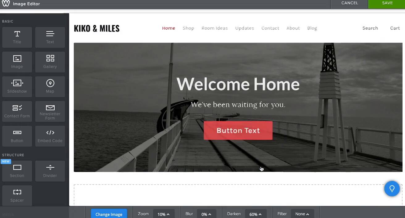In contrast, Weebly is a structured editor— elements can be dragged and dropped, but only within a pre-designed grid.