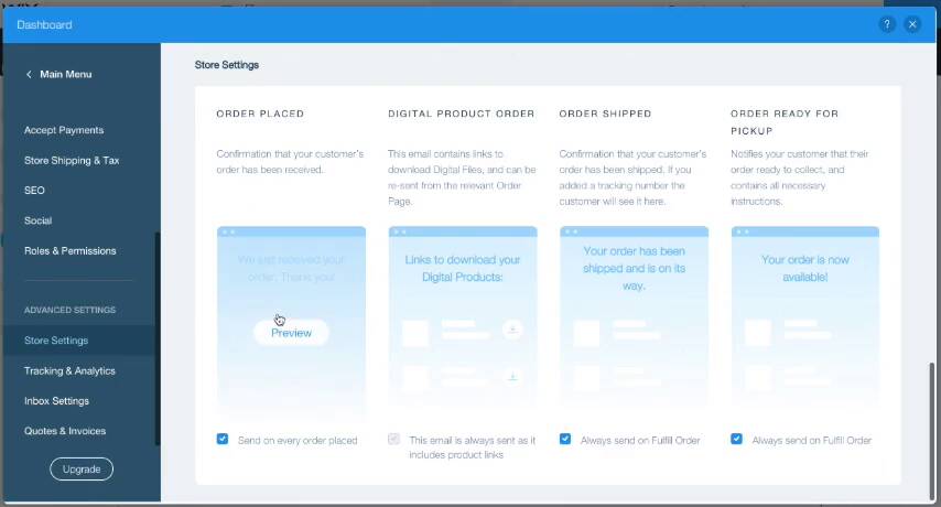 While Wix does offer a solid core of ecommerce tools, such as flexible coupon codes and digital products, it misses out some fairly important features. For instance, there’s no way to customize email receipts as there is with Weebly. Limitations of this type prevent me from recommending Wix over Weebly.